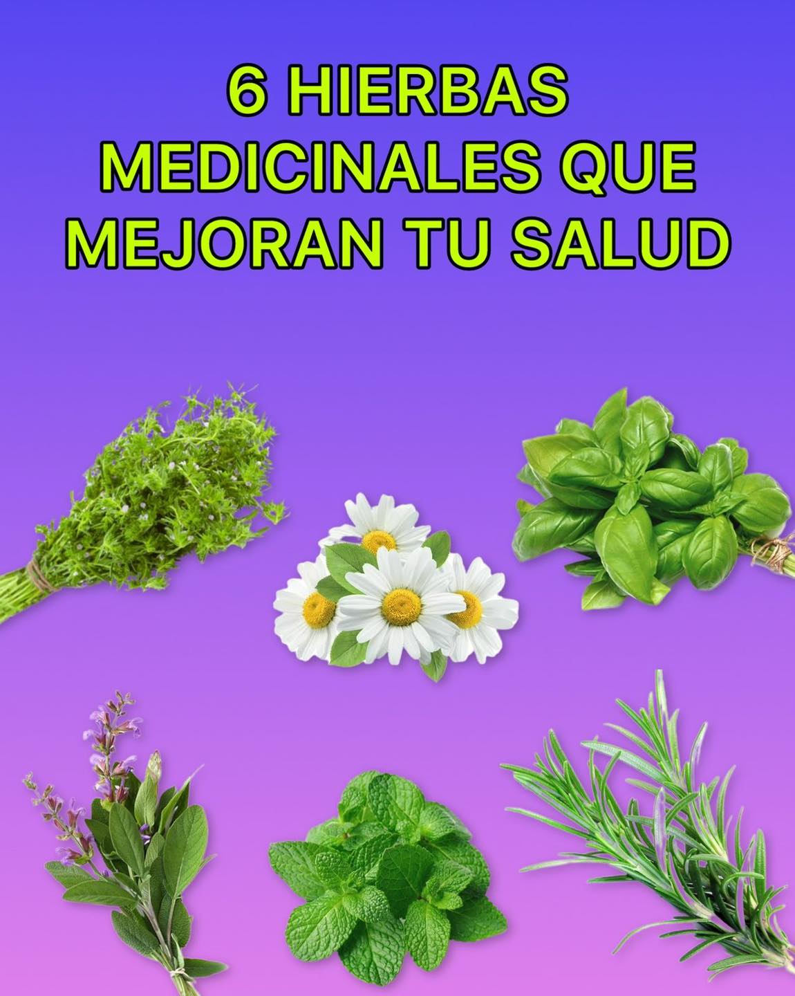 Seis hierbas medicinales comunes son: manzanilla, menta, salvia, romero, tomillo y albahaca. Estas hierbas tienen propiedades medicinales y se utilizan para tratar diversas dolencias.