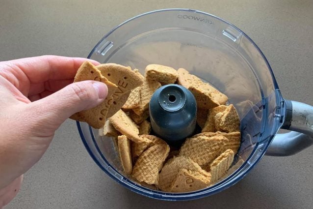 Recoge las galletas en el vaso de la batidora.1y licúalos hasta que se conviertan en polvo.