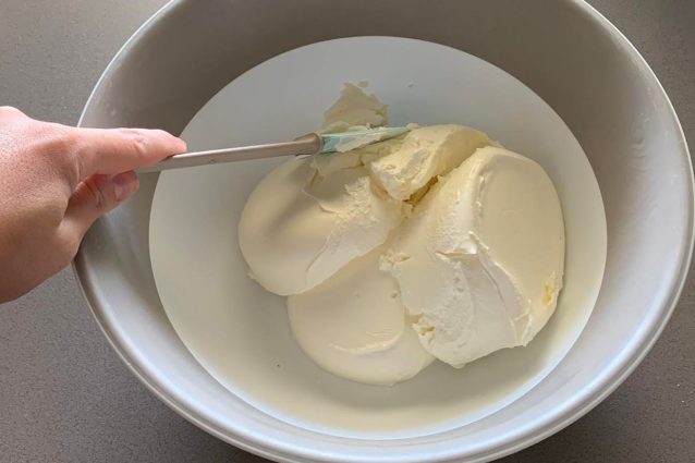 Coloca el mascarpone y la robiola en un bol grande.4.