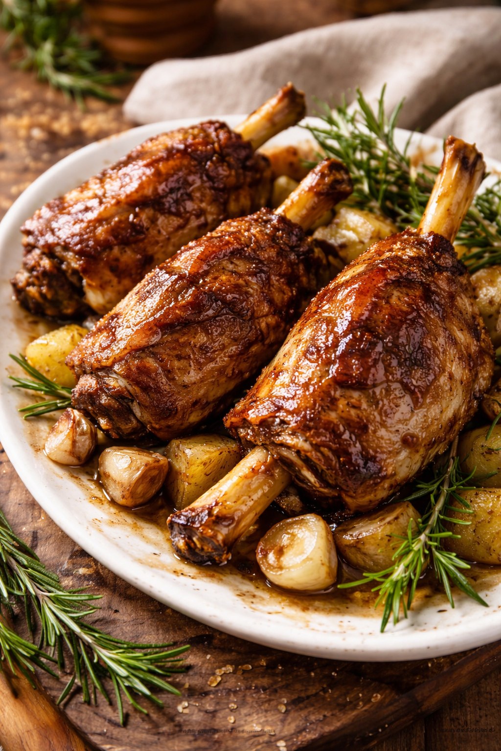 El codillo asado es una carne muy sabrosa que tan sólo necesita darle bastantes vueltas en el horno con un poco de vino para que quede jugosa.