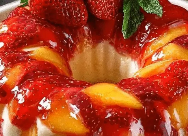 La gelatina de queso crema con frutas es un postre clásico de la repostería casera latinoamericana 🇲🇽🇨🇴🇻🇪.
