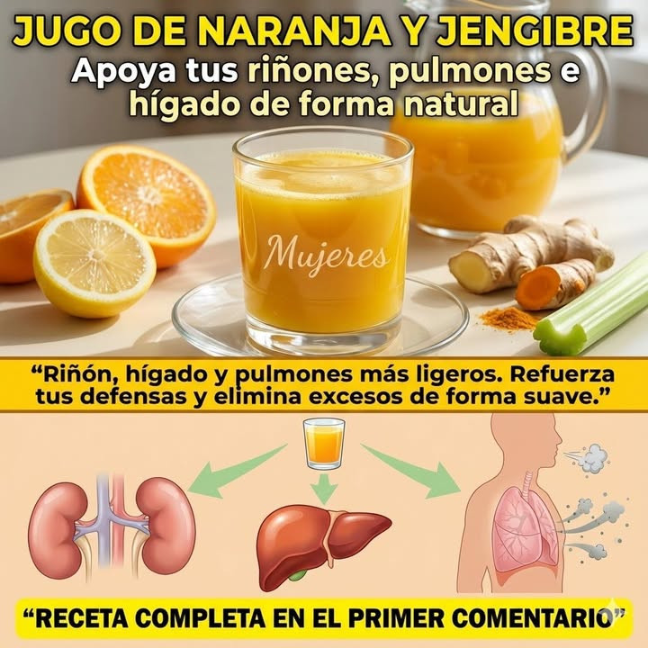 El jugo de naranja y jengibre, combinado con cúrcuma, apio y menta, es una forma sencilla y deliciosa de apoyar la limpieza natural de tus riñones, pulmones e hígado. No es una cura mágica, pero sí un excelente aliado dentro de un estilo de vida saludable.