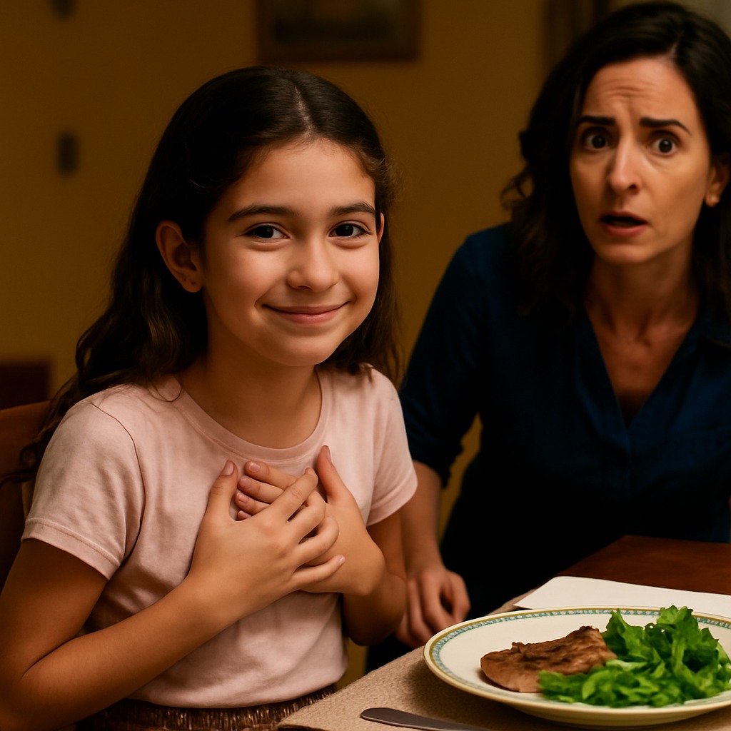 La hija de cinco años de mi esposo apenas había probado bocado desde que se mudó con nosotros. Cada noche, la misma frase, acompañada de una mirada baja y un tenedor inmóvil:
