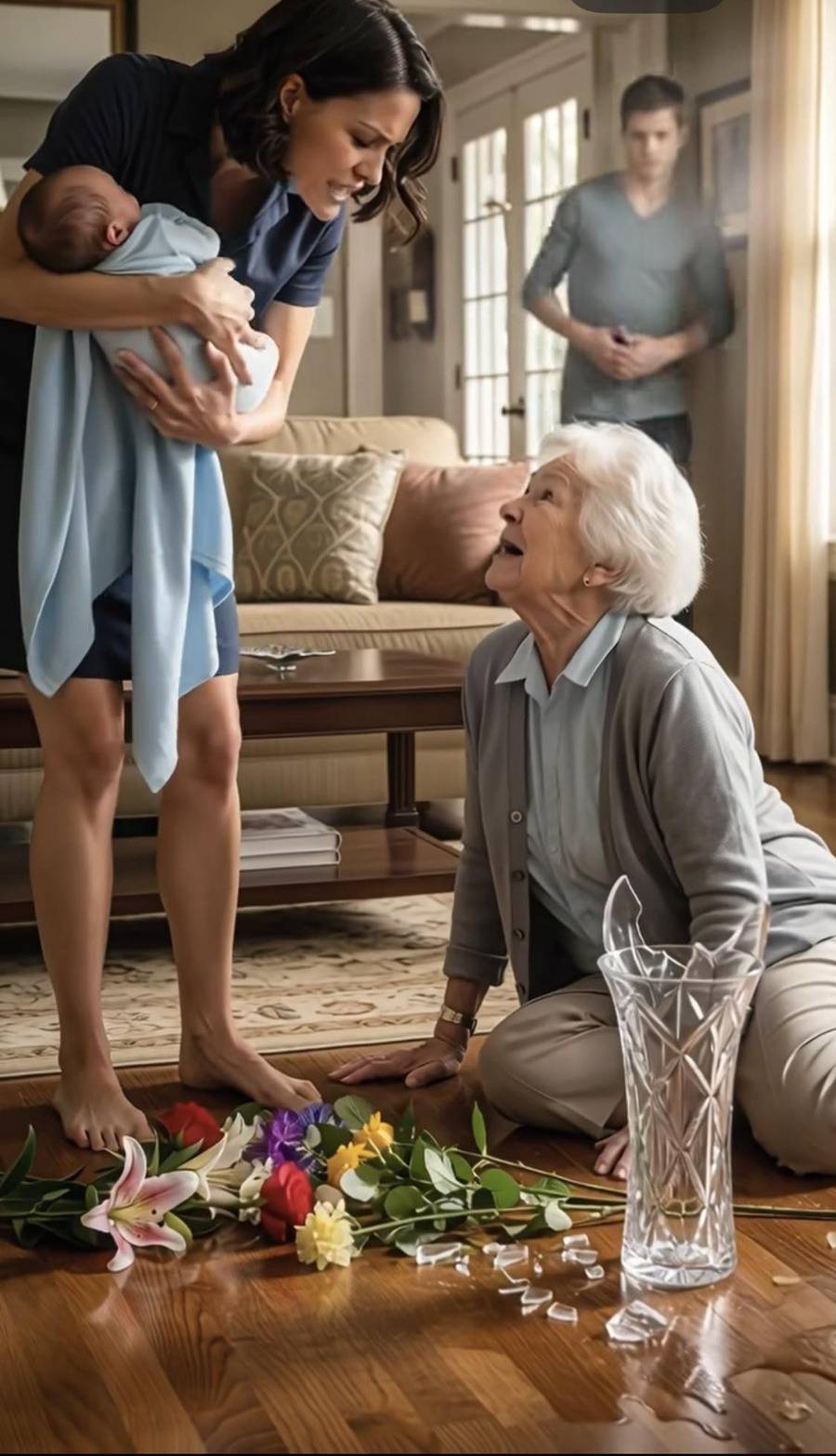 Everly estaba de pie sobre ella, nuestro nieto en brazos, con el rostro torcido de desdén.