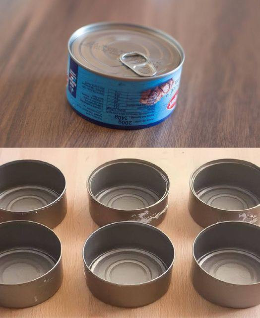 Las latas de atún limpias y pintadas pueden convertirse en pequeños organizadores de escritorio para lápices, bolígrafos y otros suministros de oficina. ¡Solo añade un poco de creatividad y tendrás un organizador único!