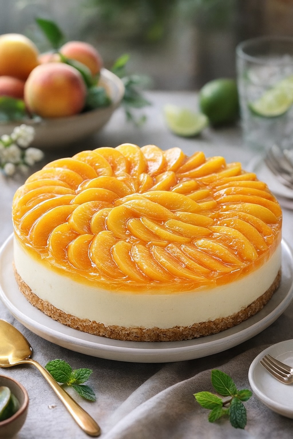 Tarta de queso sin hornear de melocotón y nata