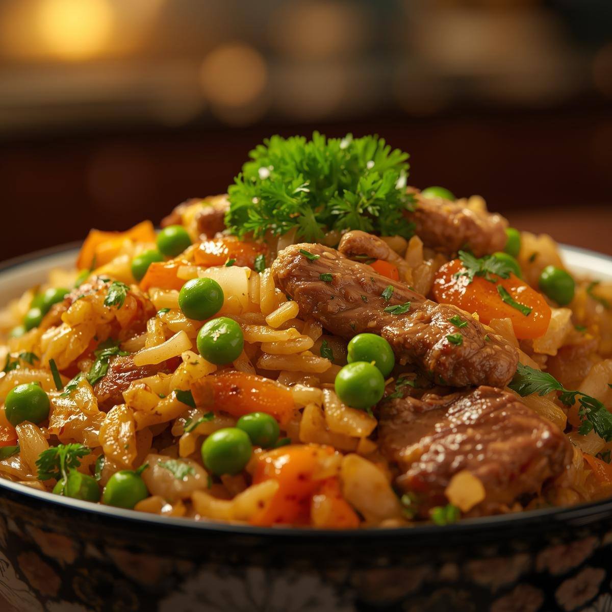 RECETA: ARROZ FRITO CON RES Y GUISANTES
