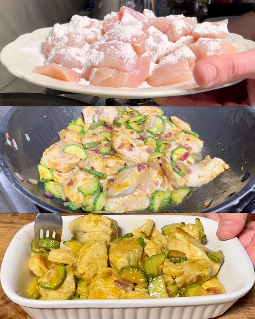 2. Cuire dans une poêle, puis ajouter le poulet fariné.3. Ajouter le sel, le poivre et le curry.