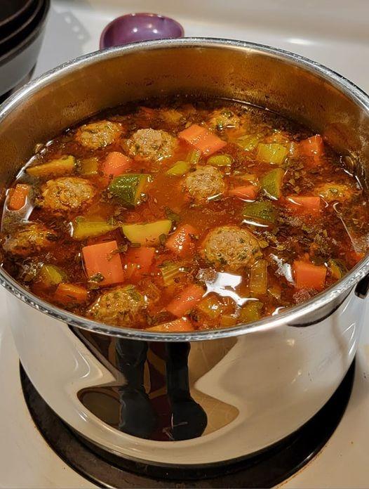 Cocción lenta: Deje que la sopa hierva a fuego lento para integrar los sabores y asegurar que las albóndigas y las verduras queden tiernas.