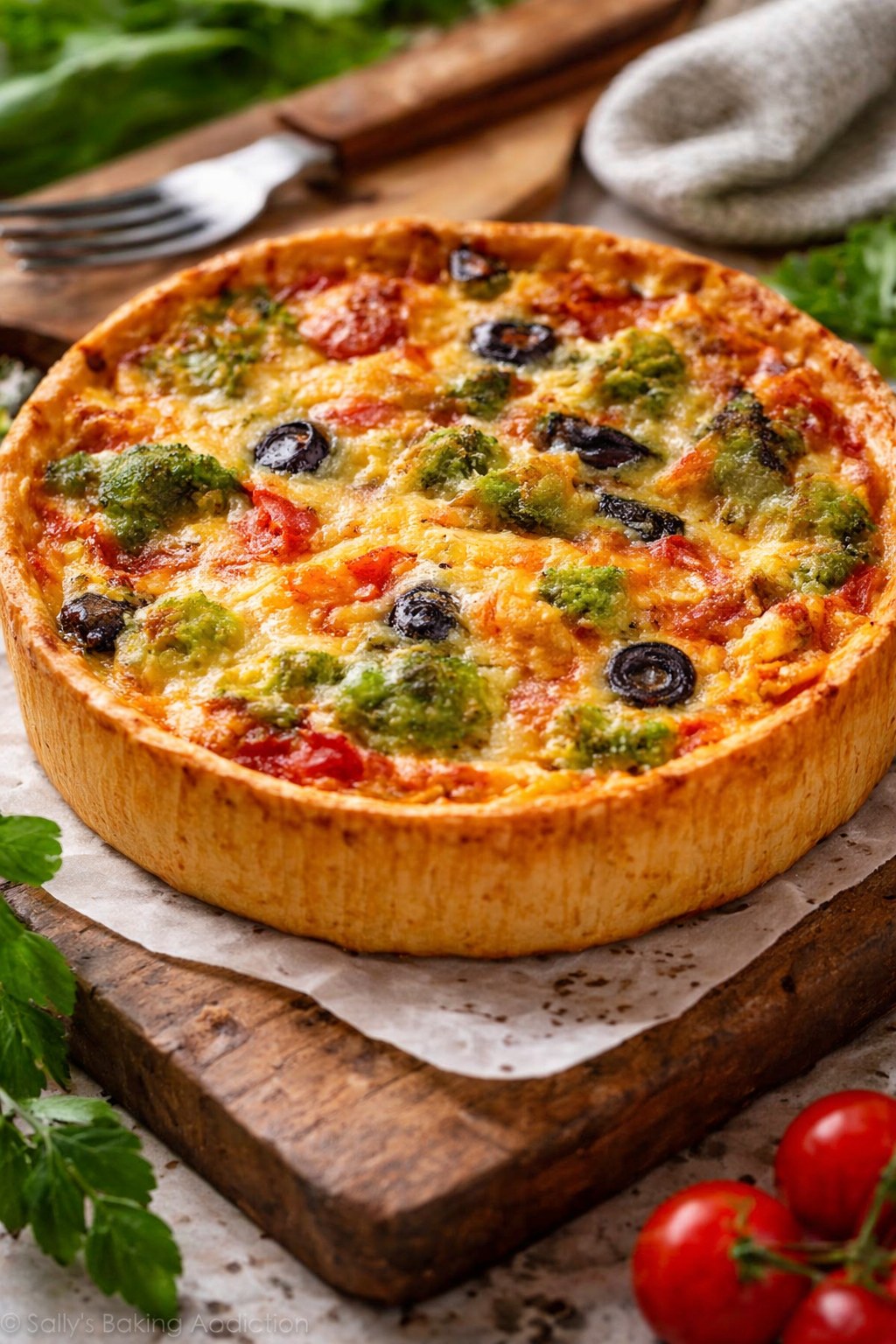 Sacamos la quiche del horno, la desmoldamos, y se sirve templada o fría.