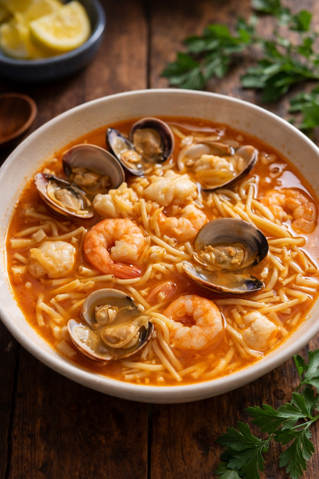 Esta Sopa de Marisco Navideña es un abrazo caliente lleno de aroma a mar, perfecta para abrir una cena festiva con elegancia. Combina un sofrito suave, un caldo intenso y mariscos tiernos en su punto para lograr una textura sedosa y un sabor profundo. Su toque de azafrán y brandy eleva cada cucharada, mientras que los jugos naturales de almejas y mejillones aportan ese guiño a costa que encanta. Acompáñala con pan crujiente y un chorrito de buen aceite para una experiencia inolvidable.
