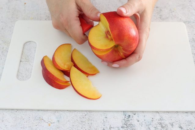 Lavar y cortar la nectarina, sin pelarla, en gajos finos12.