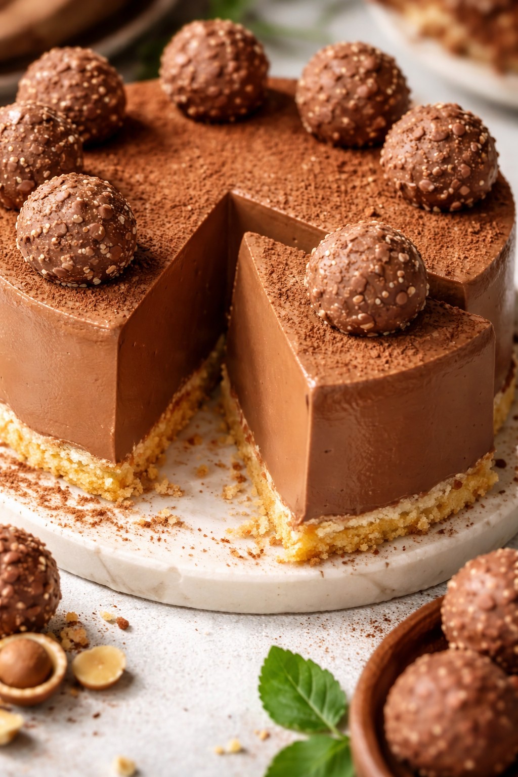 Esta tarta Ferrero Rocher sin horno es pura tentación: una base crujiente de galleta y avellanas, un relleno cremoso con notas de cacao y avellana tostada, y una cobertura brillante de chocolate que se derrite en la boca. Perfecta para celebraciones, se prepara con antelación y triunfa siempre por su equilibrio entre textura y sabor. Si te gustan los bombones que inspiran su nombre, esta versión en formato tarta te enamorará desde el primer bocado.