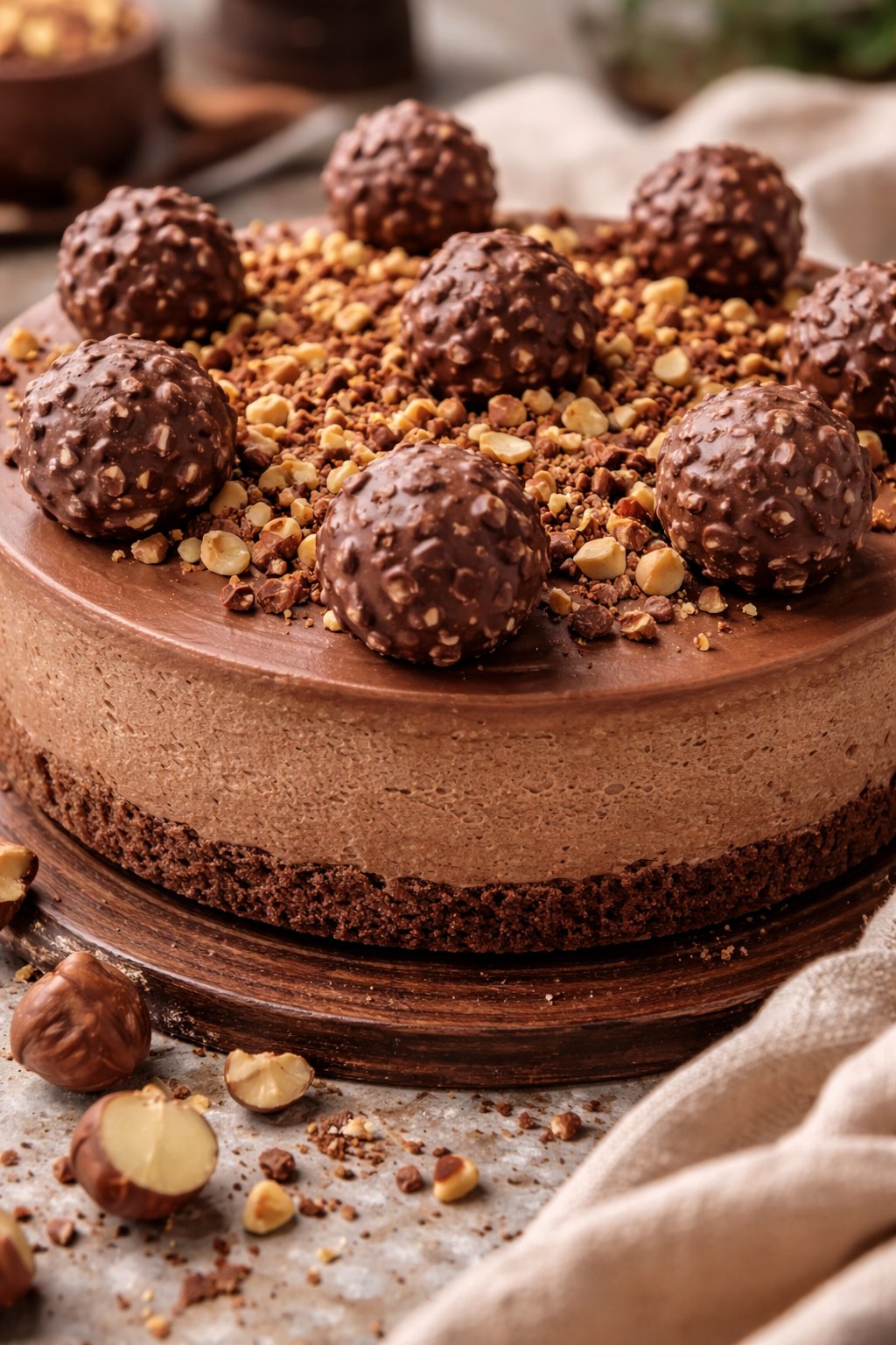 Esta tarta Ferrero Rocher sin horno es pura tentación: una base crujiente de galleta y avellanas, un relleno cremoso con notas de cacao y avellana tostada, y una cobertura brillante de chocolate que se derrite en la boca. Perfecta para celebraciones, se prepara con antelación y triunfa siempre por su equilibrio entre textura y sabor. Si te gustan los bombones que inspiran su nombre, esta versión en formato tarta te enamorará desde el primer bocado.