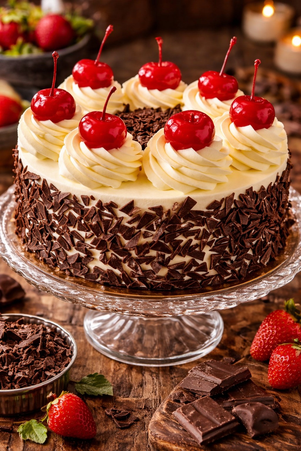 Con un cuchillo jamonero o con la hoja larga, extendemos una fina capa de nata sobre la última tapa. Sobre esta echamos ralladuras del chocolate negro para decorar.